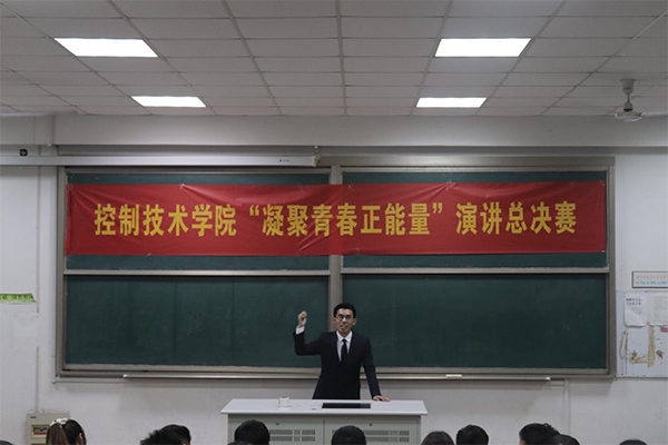 5月14日18:00控制技术学院“凝聚青春正能量”主题演讲比赛决赛在至善楼E301举行,控制技术学院分团委书记庞军、学生会主席团担任评委。