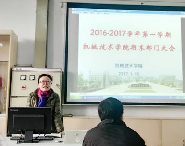115日上午9:00,机械技术学院在工业中心二楼教室召开了2016-2017学年第一学期期末部门大会,党总支书记吴慧媛主持会议。
