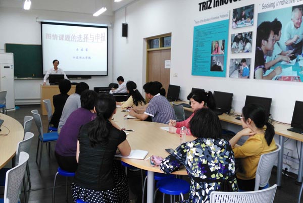 马建富教授围绕图情课题的选择和图情项目的申报两个主线展开,有重点、结合实例详细地为大家讲解了图情学科从课题的选择到项目申报内容的中的重点、难点撰写要求。马教授幽默风趣的语言,生动鲜活的例子,深入浅出的讲解,大大地激发了图书馆人员的科研信心和决心。