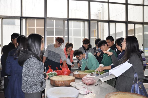 现场比赛分为三组,每组由6名选手组成,需要完成1道特色菜、2道必选菜、4道自选菜。在两个半小时的比赛中,同学们分工合作,认真的拣菜、洗菜、切菜、炒菜,配合默契,均完成了7道菜的制作。经过评选,曹刘同学制作的“水煮肉片”、“啤酒鸡腿”,陆宇正同学制作的“红烧鲫鱼”获得一等奖,第一组获得最佳团体奖。活动中老师们也积极参与,献出了自己的拿手菜,杨雪琴老师精心制作的“红烧虾”备受欢迎。