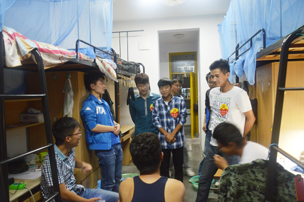 控制技术学院现有学生党员14名。为了让学生党员践行党的群众路线,更好的发挥作用,服务广大学生,学院在迎新的队伍中专设了学生党员服务点。迎新当日,学生党员们全体出动,不仅耐心应对新生和家长的咨询,还主动向他们介绍学校的基本情况,传授新生适应指南。军训期间,控制学院的学生党员们还自发走进新生宿舍,询问学弟学妹们的适应情况。新生关心的话题很多,无论是专业学习、就业出路还是社团选择、时间安排,党员们都结合自身经历,详细解答。整个学院145个新生宿舍,分布在3个园区,全部走访实属不易,但他们没有落下一个。走访的过程中,他们还细心做了记录,将走访的情况反馈给相应班级的班主任老师。
