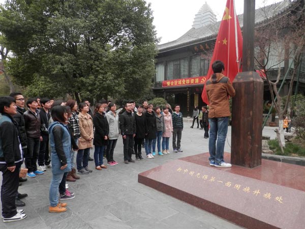 全体新党员观看了专题片《誓言颂》,通过回顾中国各个时期党员英烈的形象,经历心灵的洗礼,花树洋老师带领全体新党员在党旗下进行入党宣誓。党建基地吴臻翔书记为大家介绍了这个红色文化中心的历史变迁,随后在新中国成立后无锡第一面国旗升起的地方,举行了庄严的升旗仪式。党员们还参观了秦邦宪故居。