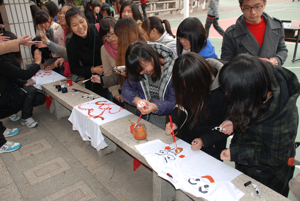 参赛团队须在一定的时间内运用宣传部提供的画笔、颜料、T恤衫完成自己的作品。比赛中,学生们充分发挥丰富的想象和聪明才智,创作了一幅幅美丽而充满生气的优秀的作品,受到了前来观摩学生的赞扬。在活动期间,不仅有“十佳歌手”献唱,还有轮滑社助兴表演,同学们的参与热情十分高涨,现场气氛十分热烈。(经管学院 李佳玉 文/ 吉鑫明 摄)