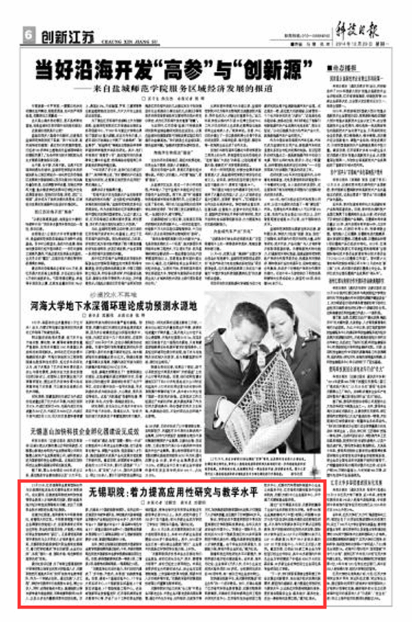 加快建设创新平台,是无锡职院推进“校企合作”的一个成功做法。如今,已牵头组建了江苏省汽车职业教育集团、无锡市物联网职教集团,并建有江苏省传感网应用工程技术研究开发中心、江苏省冷压冶金球团工程技术中心、无锡市汽车零部件制造中小企业公共服务平台、江苏省和无锡市服务外包培训机构、无锡(太湖)中小企业服务中心,并开通了无锡制造业服务网。