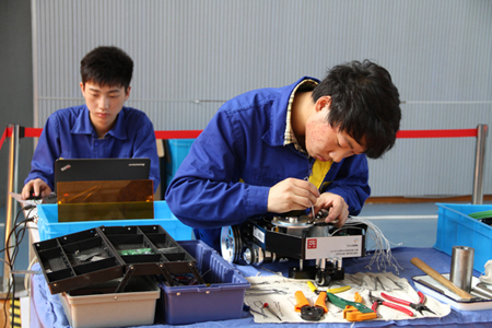 参赛选手在装配机器人