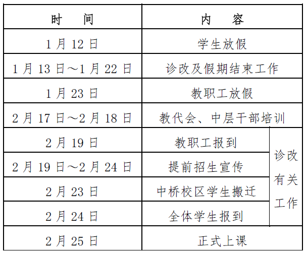二、寒假及假期前后主要工作安排