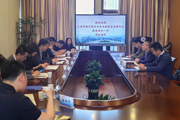 4月23日上午,大连市现代服务业职业教育发展联合会会长陈建一行来校调研交流。我校副院长强伟纲、教务处、机械工程学院相关负责同志参加座谈交流。