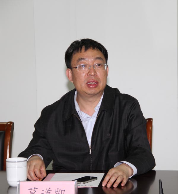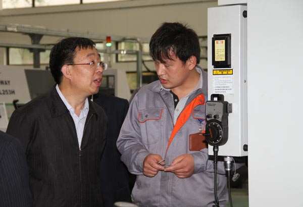 葛道凯司长(中)在机械技术中心与我校教师交流
